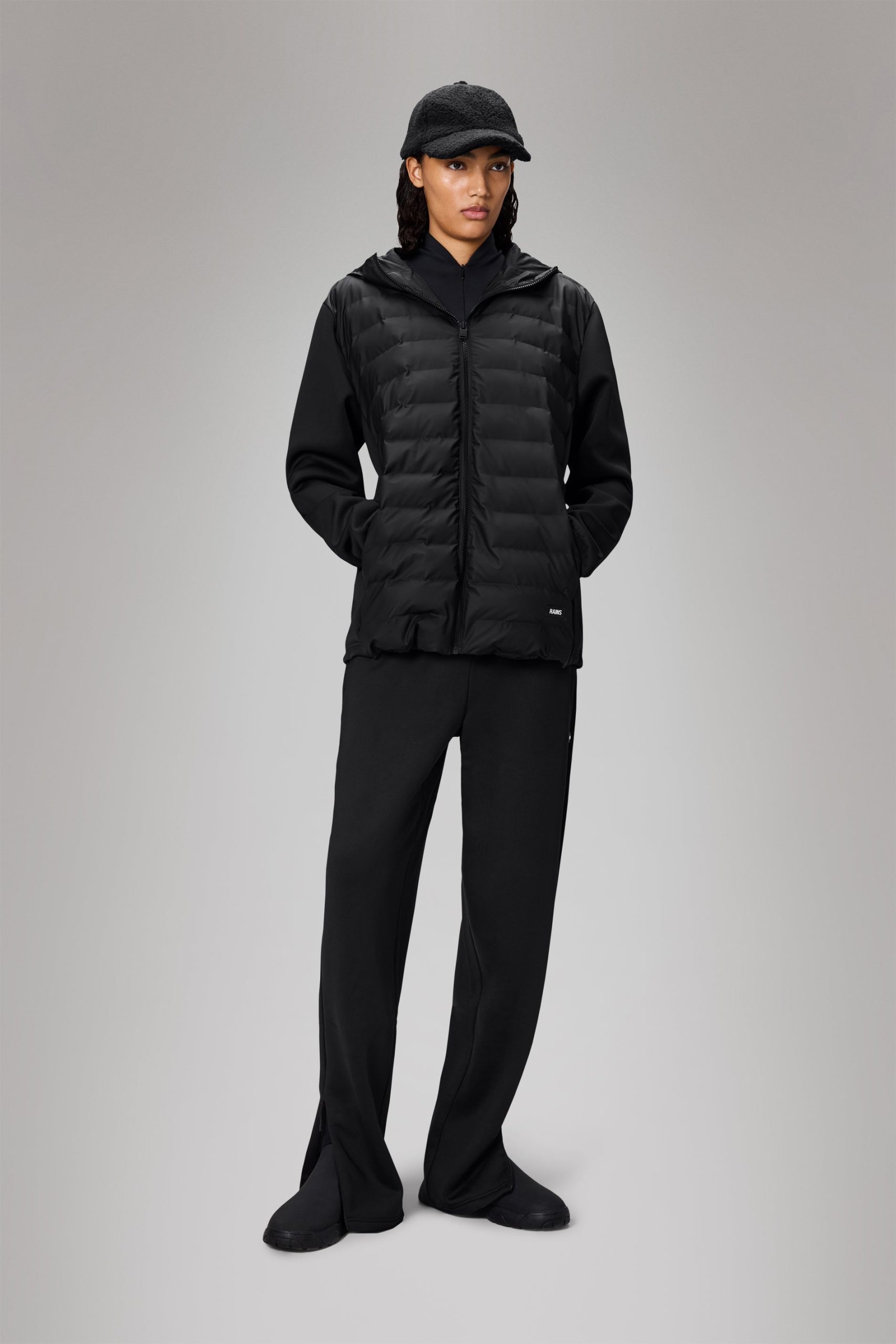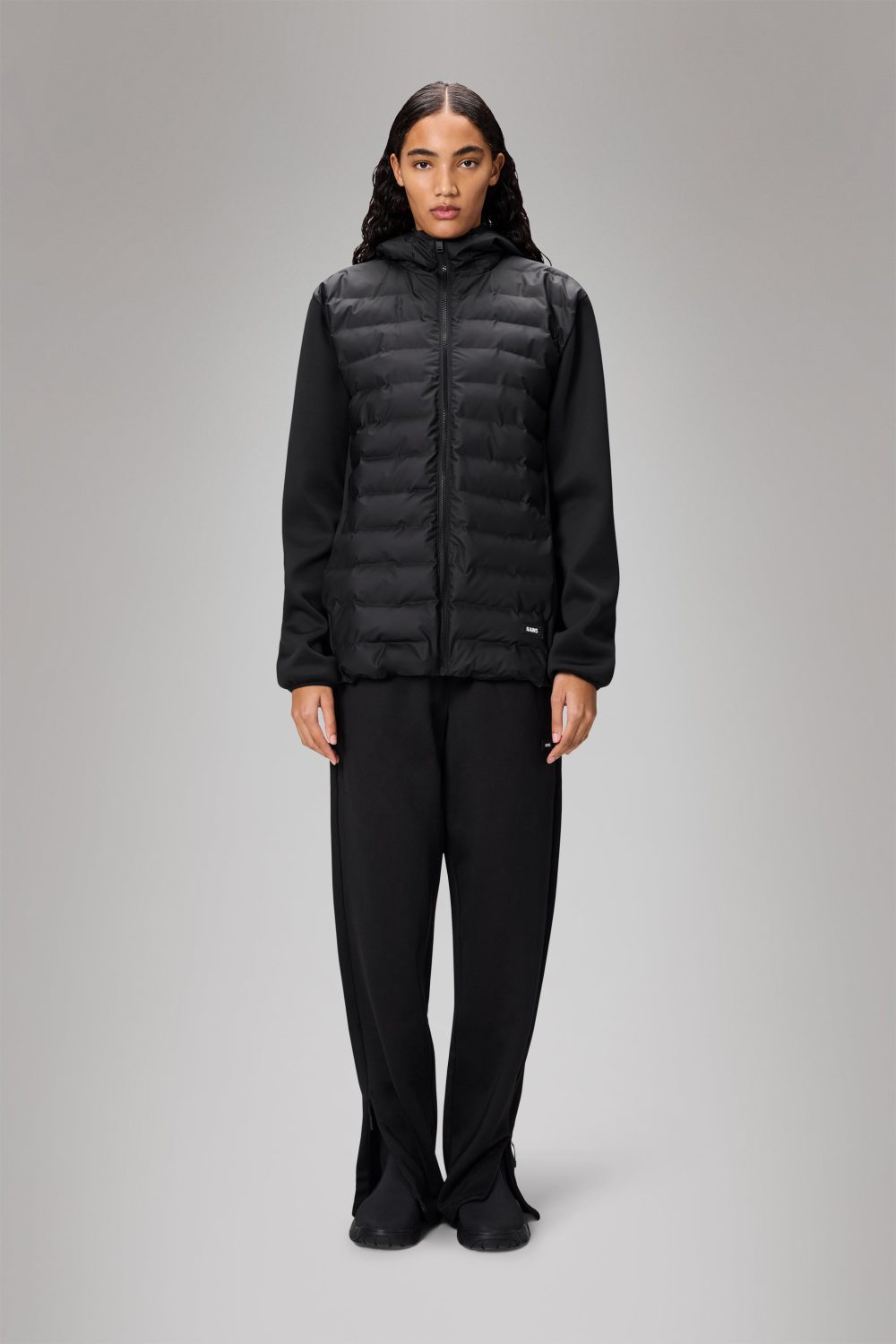 Safi Hybrid Jacket is a hooded silhouette, perfect to keep you warm in milder weather. Features include a zip closure at front, a paneled hood and an elastic string adjustment at the hem. The design is finished with a rubberized branding detail.