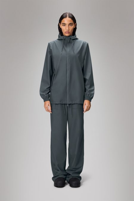 String W Jacket is cut from Rains’ signature PU fabric and features welded seams. The finish is lightweight with a smooth feel.
